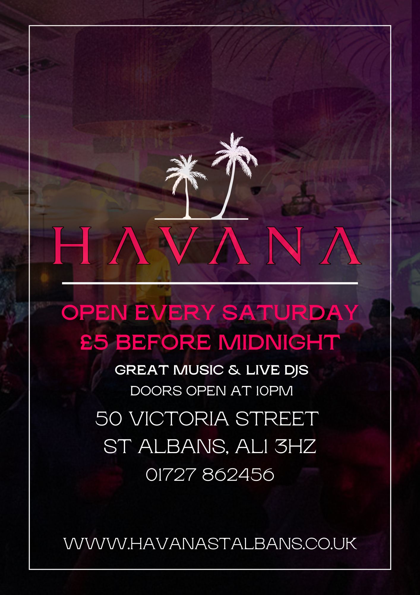 Located in the heart of St Albans, Havana offers a unique and exciting experience with an unrivalled friendly, feel-good party atmosphere.